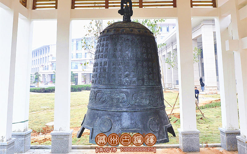 警示鐘,通高2米,下部口徑1.4米,上部鈕高0.3米,總重約1600公斤。襄陽(yáng)市檢察院定制,警世鐘是本次青銅器訂單當(dāng)中,規(guī)格最大,文字最多,要求最高,用銅最重的器物,他的制作工藝如果運(yùn)用我們的失蠟精密鑄造法,反而達(dá)不到精良效果,因而我們聘請(qǐng)了多位專(zhuān)家指導(dǎo),運(yùn)用最先進(jìn)復(fù)合型精密鑄造工藝,其中使用陶瓷型技術(shù)制作鐘外模,運(yùn)用樹(shù)脂砂工藝做鐘內(nèi)心,因而得到了完好鐘體外形,保證了發(fā)音的渾然一體,精細(xì)的紋飾反映了獨(dú)特的地域歷史文化。